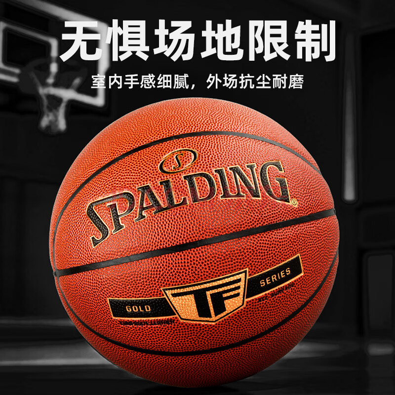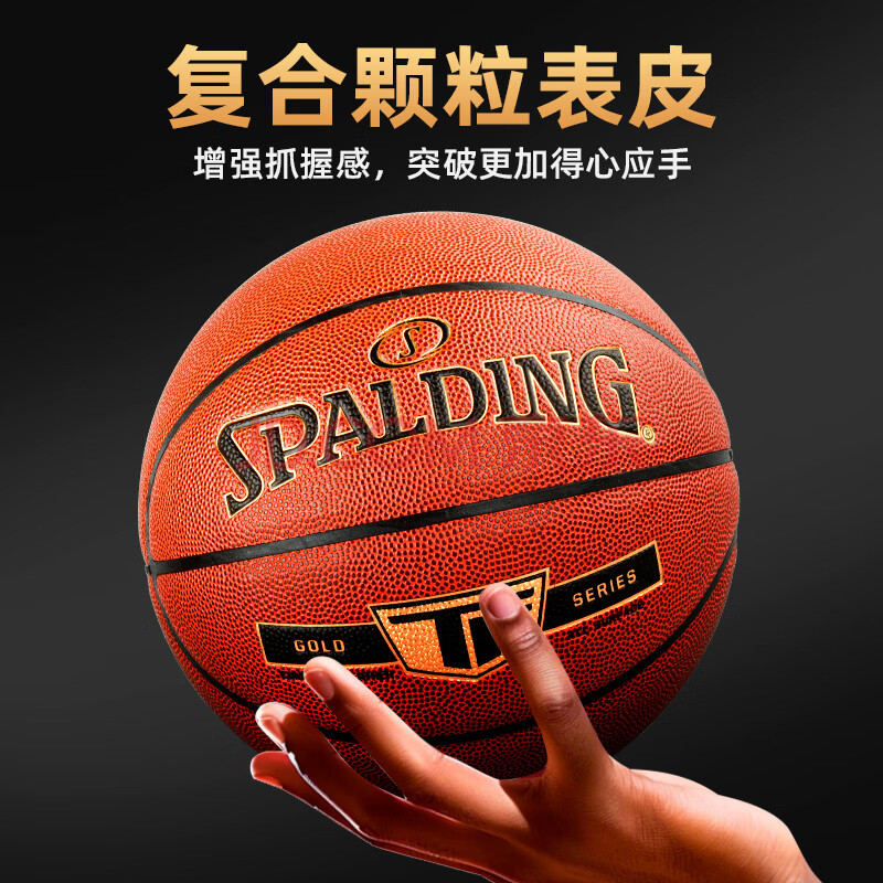 商品相册:斯伯丁篮球7号PU比赛Gold经典系列室内外通用职业赛事成人篮球 76-857Y第