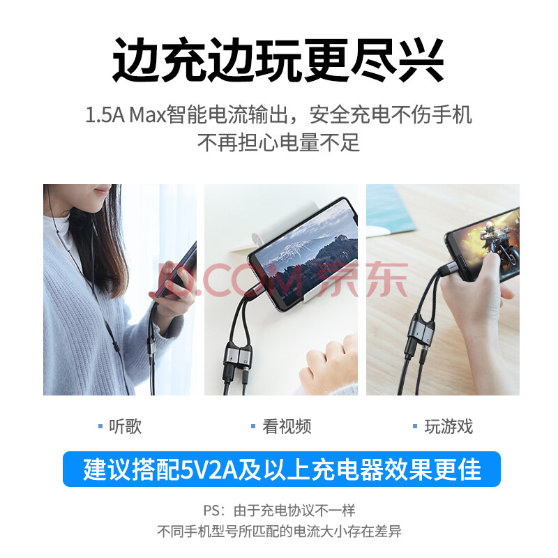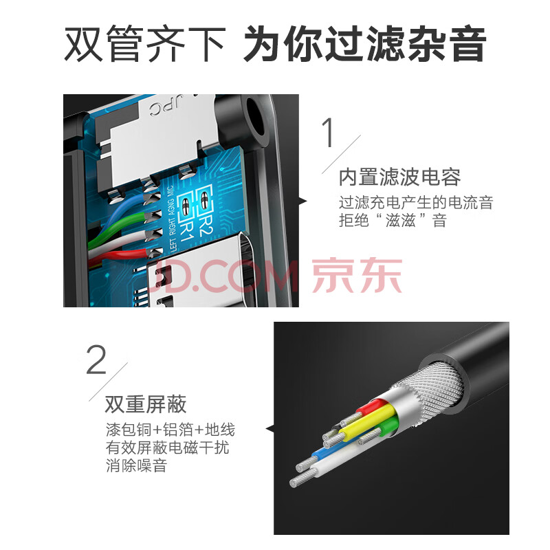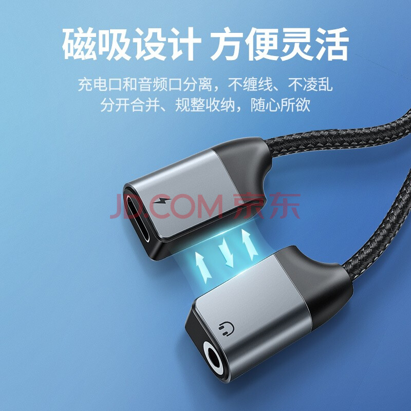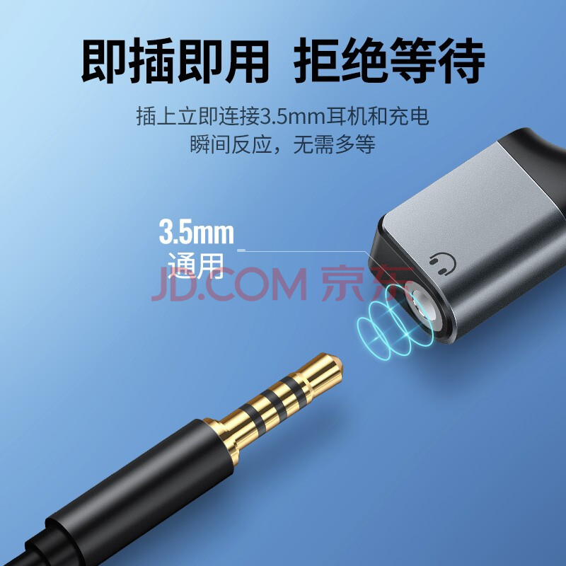 商品相册:绿联耳机转接头Type-C转3.5mm音频数据线USB-C转换器 充电听歌二合一适用于小米10/9华为Mate40Pro第