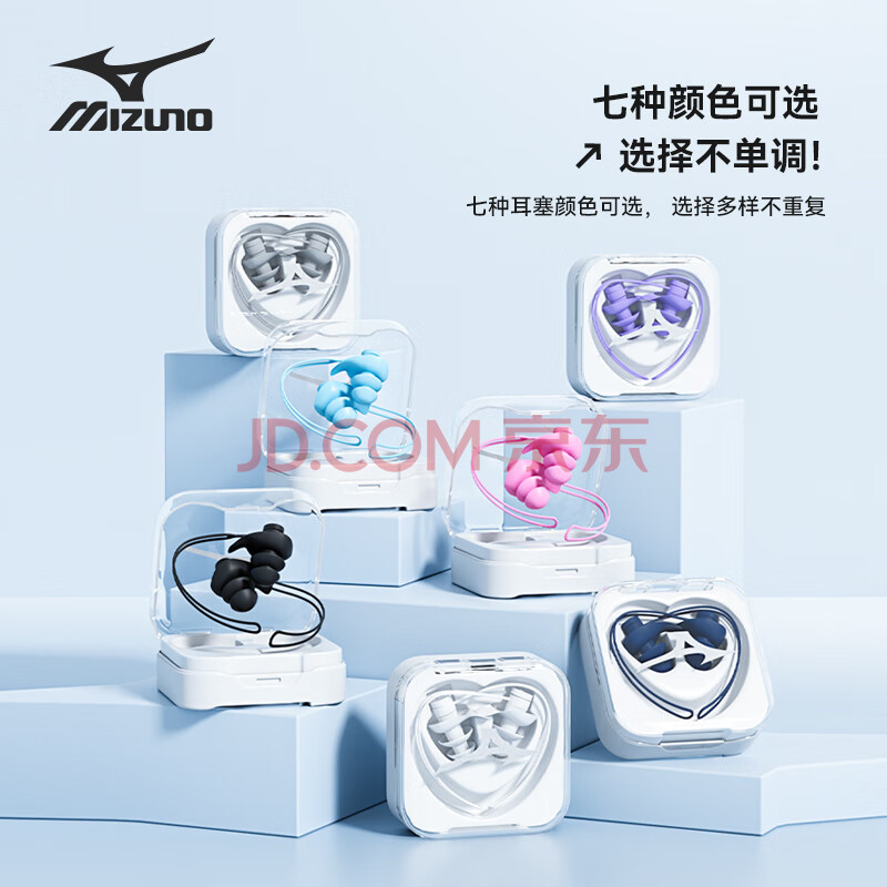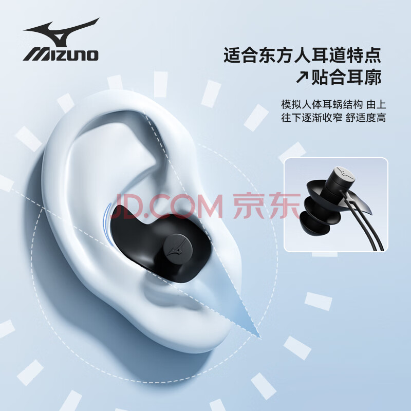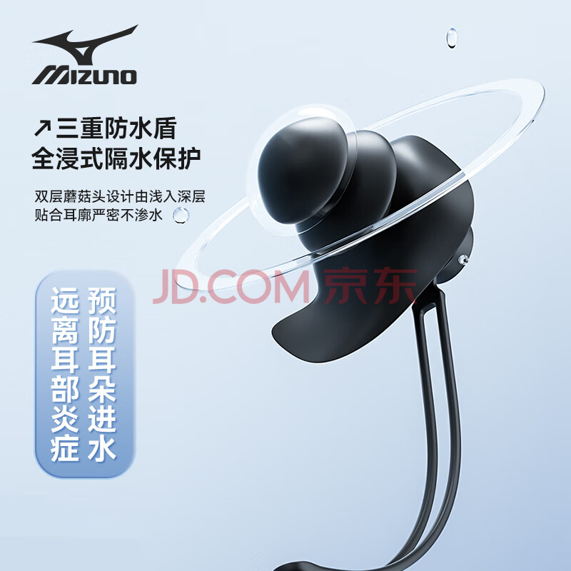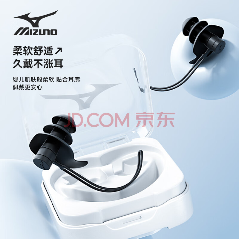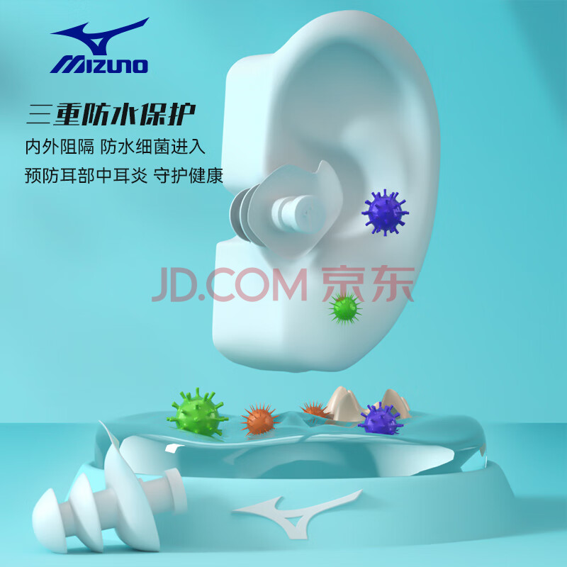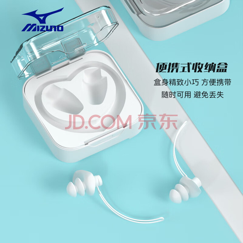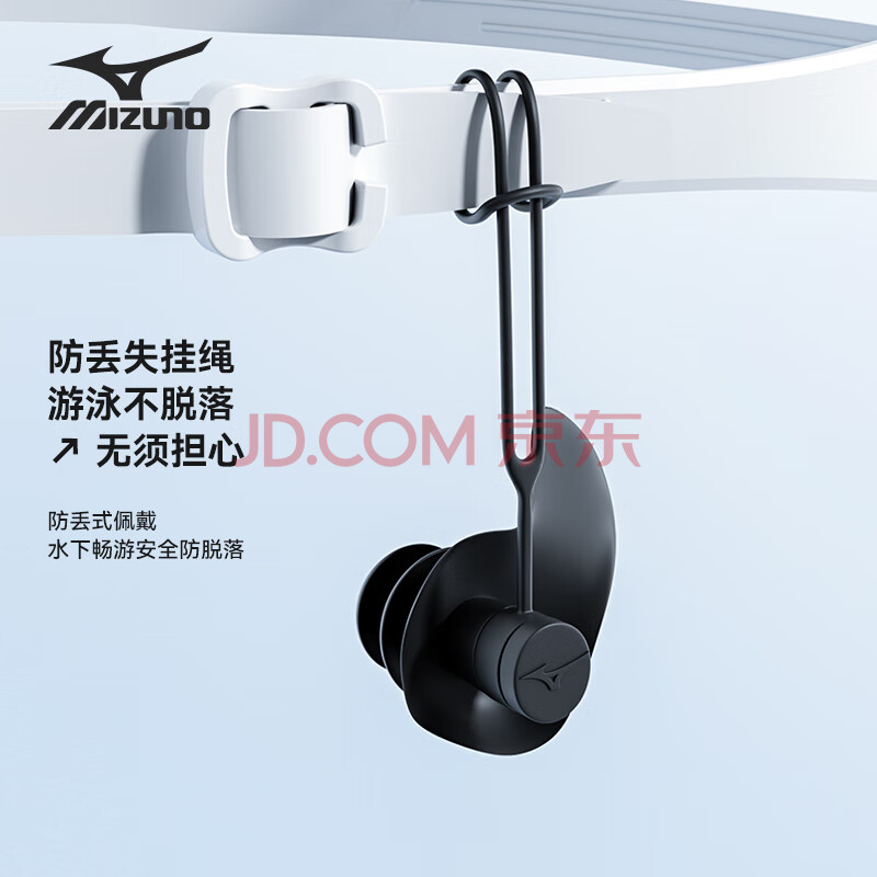 商品相册:美津浓(MIZUNO)游泳耳塞防水中耳炎带挂绳防丢泳镜成人儿童硅胶堵耳装备N2001白第