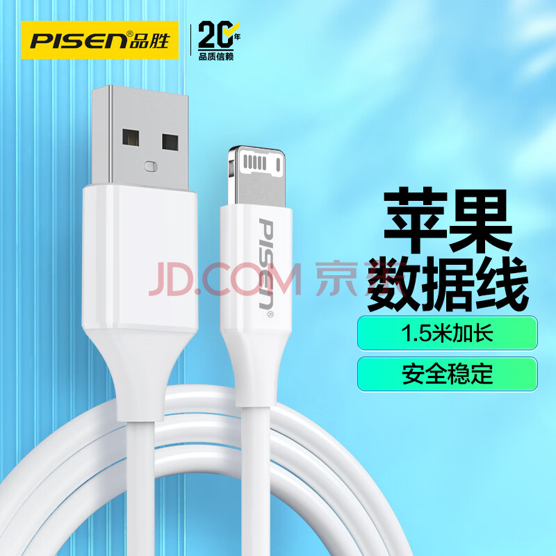 商品相册:品胜 苹果数据线USB to Lightning充电线适用iPhone14/13/12ProMax/XR/X/8/SE手机平板车载线1.5米加长第