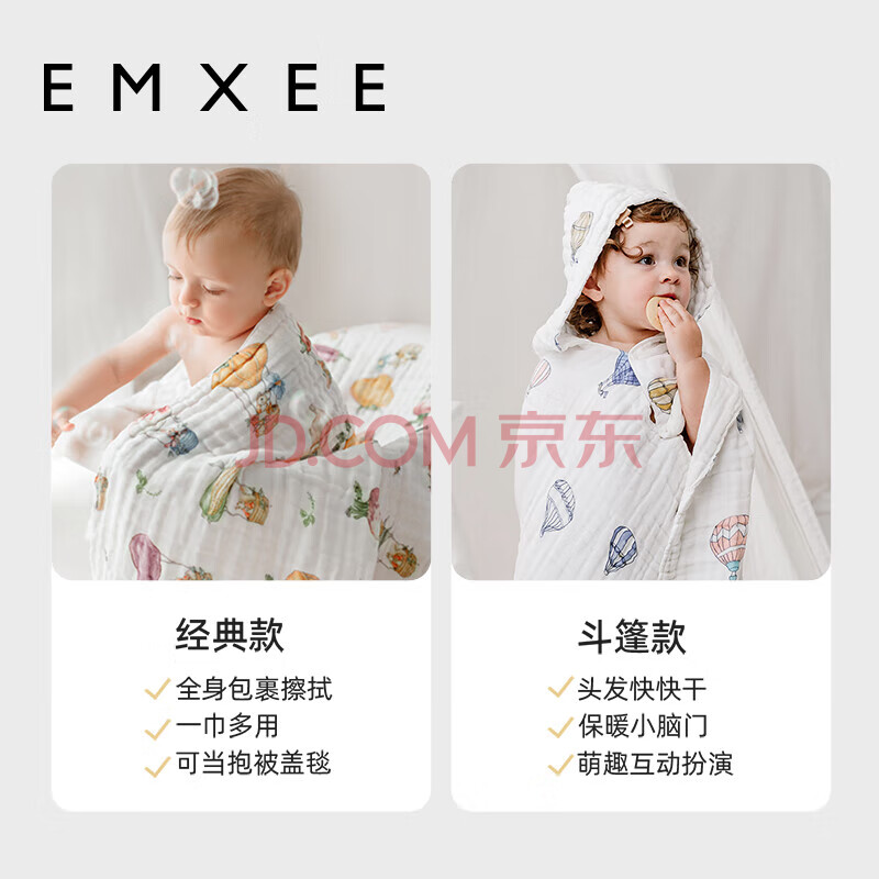 商品相册:嫚熙(EMXEE)婴儿纱布浴巾a类纯棉儿童浴巾新生儿浴巾洗澡巾天空之旅105*105cm第