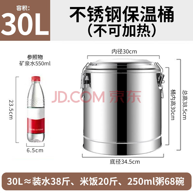 商品相册:全适不锈钢多层保温桶30L商用大容量装汤密封桶食堂米饭桶摆摊装冰块第