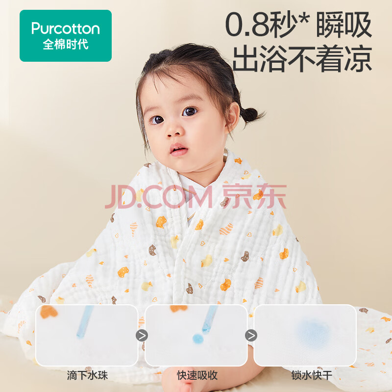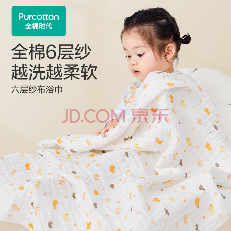商品相册:全棉时代 婴儿浴巾 新生儿童6层水洗纱布浴巾 男女纯棉小兔星星115*115cm第