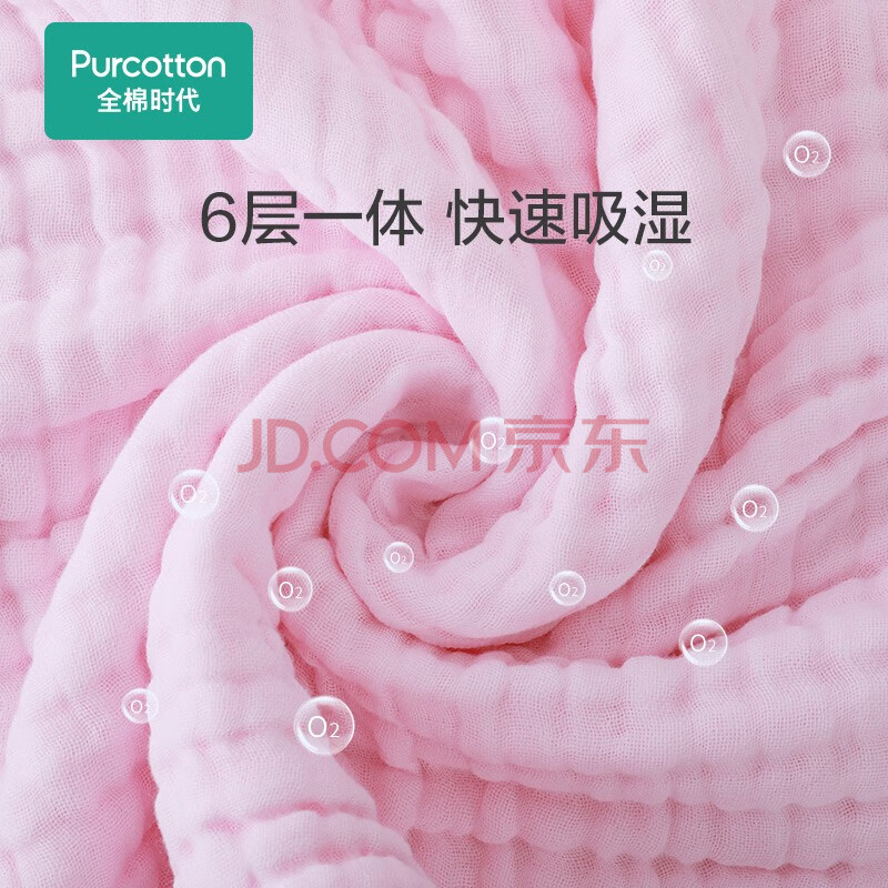 商品相册:全棉时代婴儿浴巾 6层水洗纱布浴巾 宝宝纯棉大毛巾被盖礼盒 粉色95*95cm第1张/共7