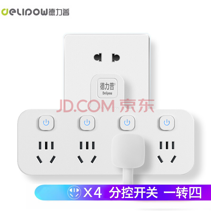 商品相册:德力普(Delipow)排插 一转四多功能插座 分控开关/插座转换器/插线板/无线插头第