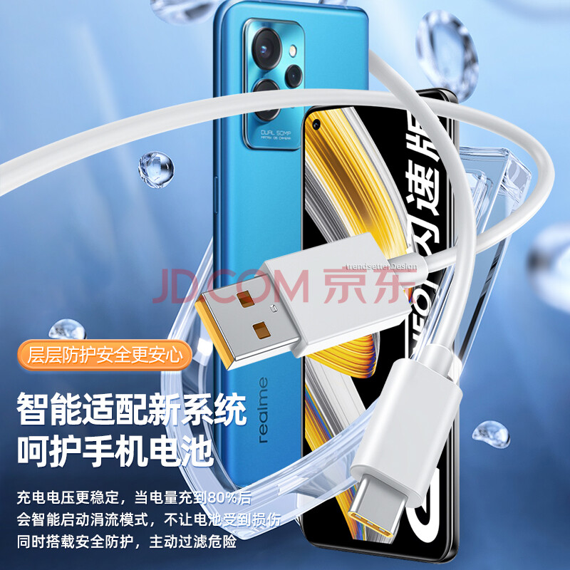 商品相册:trendsetter适用realme真我数据线65W快充gt2pro/neo闪速/2t/q3s/q2/探索x50/70/v13/15/x2闪充充电线第