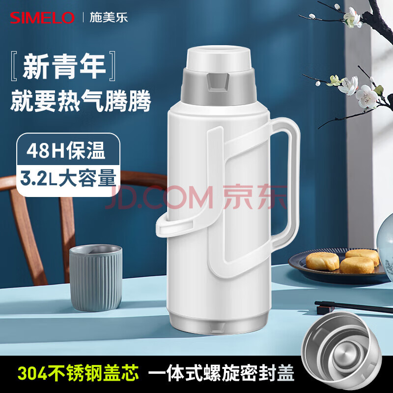 商品相册:SIMELO保温壶家用大容量玻璃内胆热水瓶暖水壶学生宿舍3.2L明月无印白第