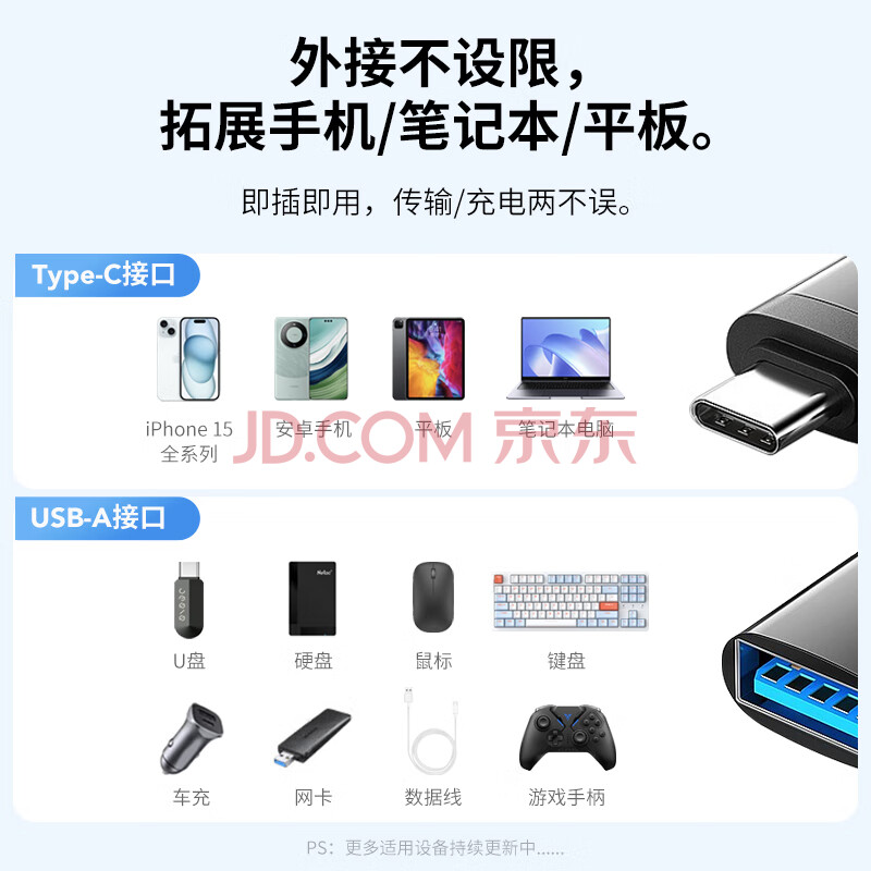 商品相册:Snowkids Type-C转接头USB3.2Gen2手机U盘OTG 10Gbps数据线车载苹果拓展USB-C换器iPhone15~17平板iPad硬盘第