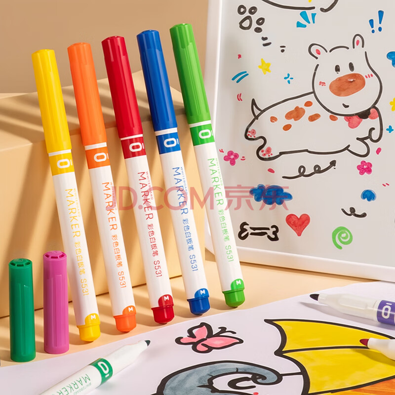 商品相册:得力(deli)彩色可擦白板笔套装 儿童学生马克笔水彩笔涂鸦绘画办公会议家庭教学12色S531 儿童节礼物第