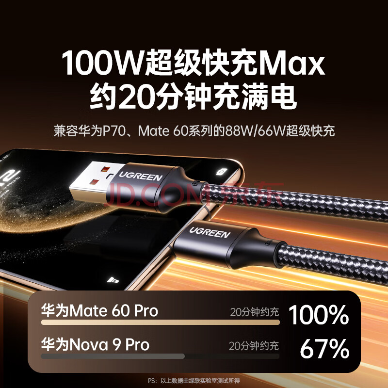 商品相册:绿联Type-C数据线6A适用华为荣耀超级快充100W/66W充电线Pura80/70/Mate70/60Pro+小米安卓手机车载2米第