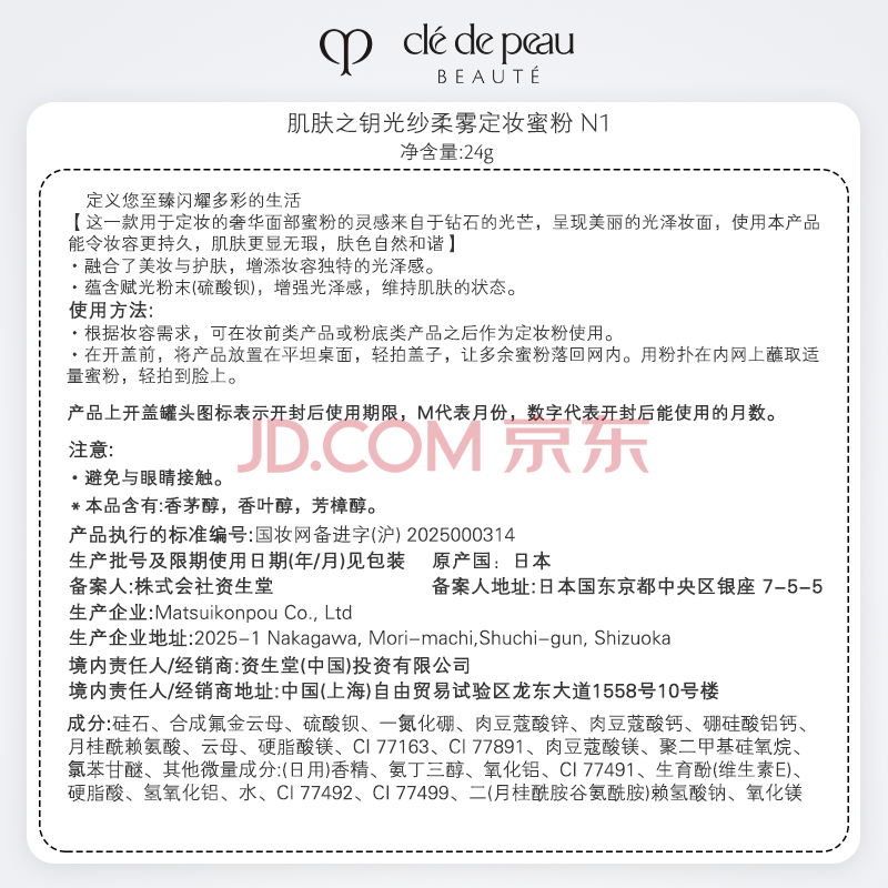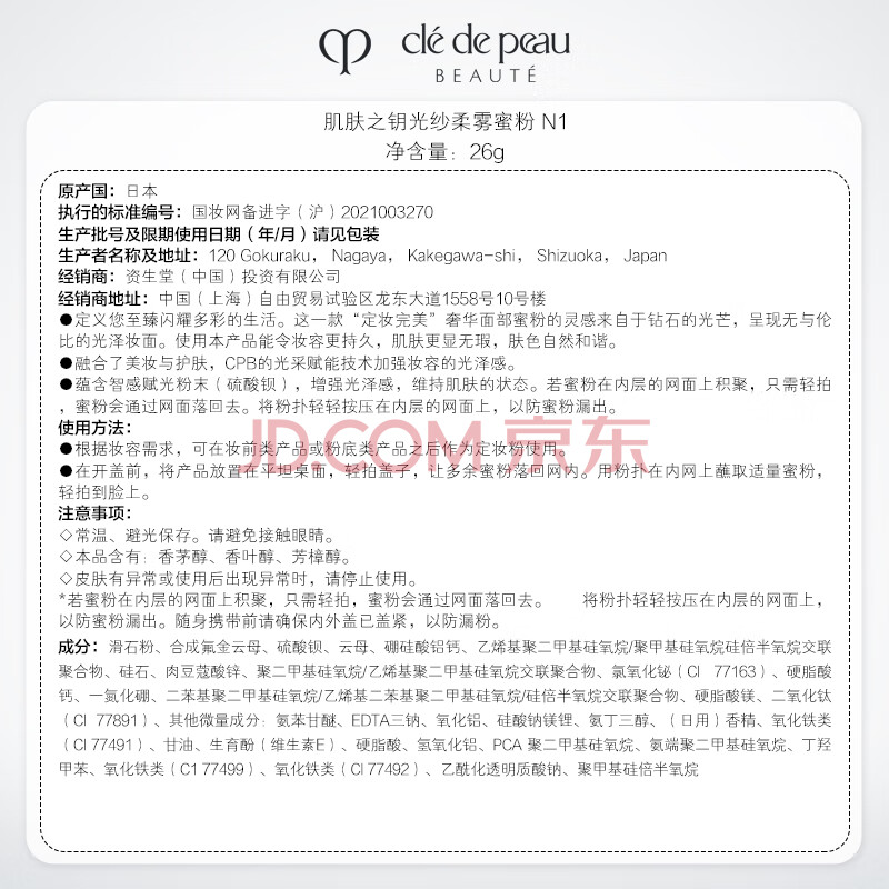 商品相册:肌肤之钥(CPB)光纱柔雾定妆蜜粉 24g#N1持妆透亮生日礼物送女友第