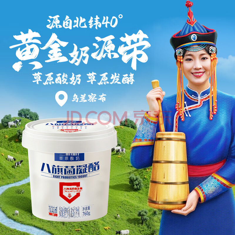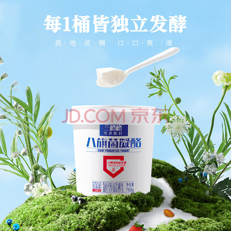 商品相册:兰格格 草原酸奶 八旗菌原味凝酪760g*1 低温酸牛奶第