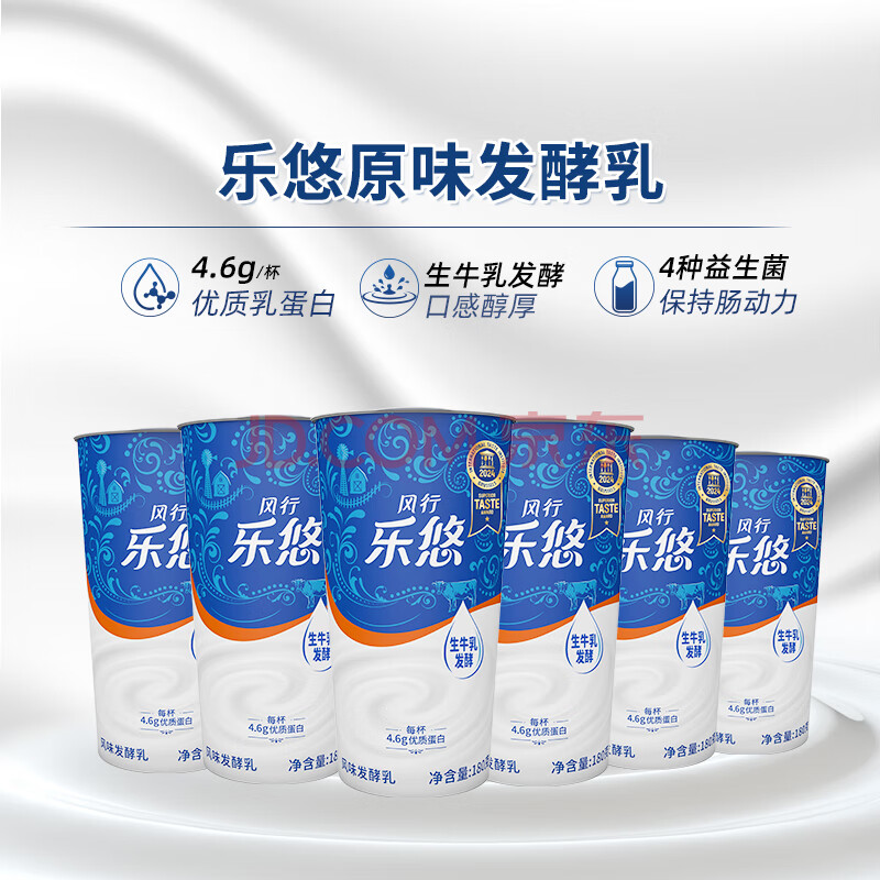商品相册:风行牛奶 乐悠原味酸牛奶 180g*6杯 生鲜轻食低温酸奶风味发酵乳第