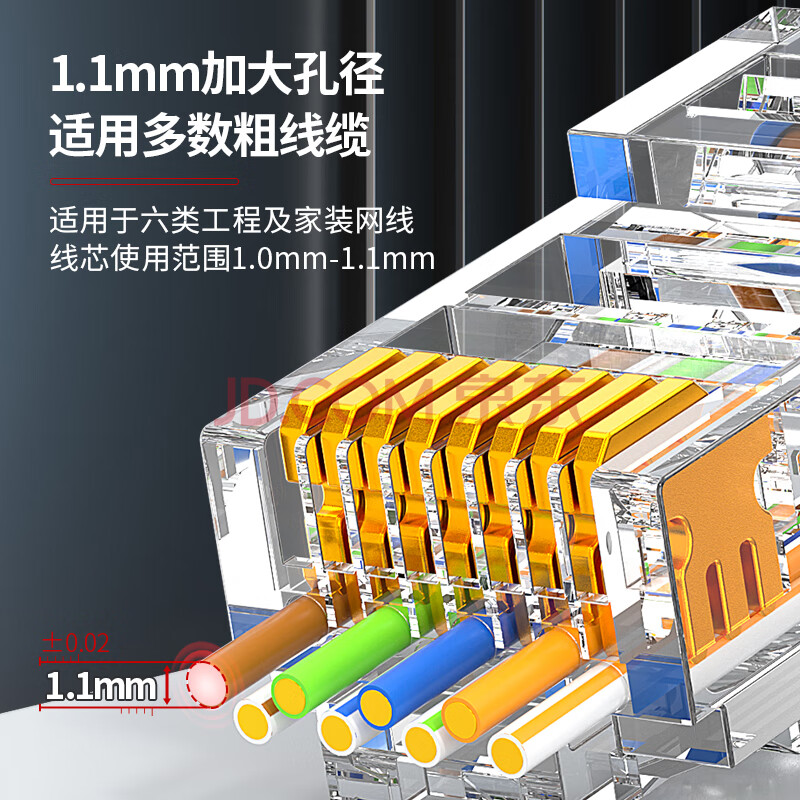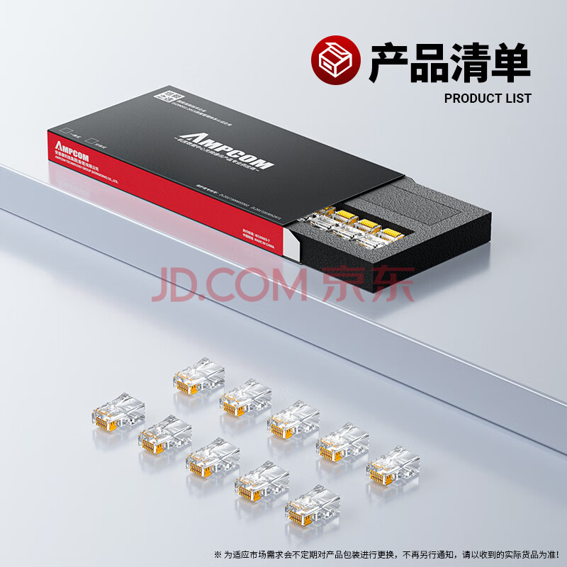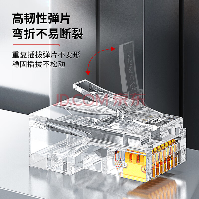 商品相册:安普康(AMPCOM)六类网络水晶头通孔穿孔式 RJ45千兆CAT6非屏蔽3μ纯铜镀金8P8C6类网线电脑连接头10个 AM179108第