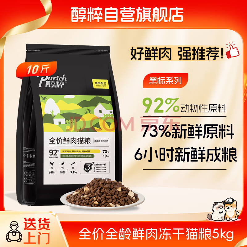 商品相册:醇粹黑标猫粮 全价无谷鲜肉冻干猫粮成猫幼猫益生菌肠胃猫干粮5kg10斤第