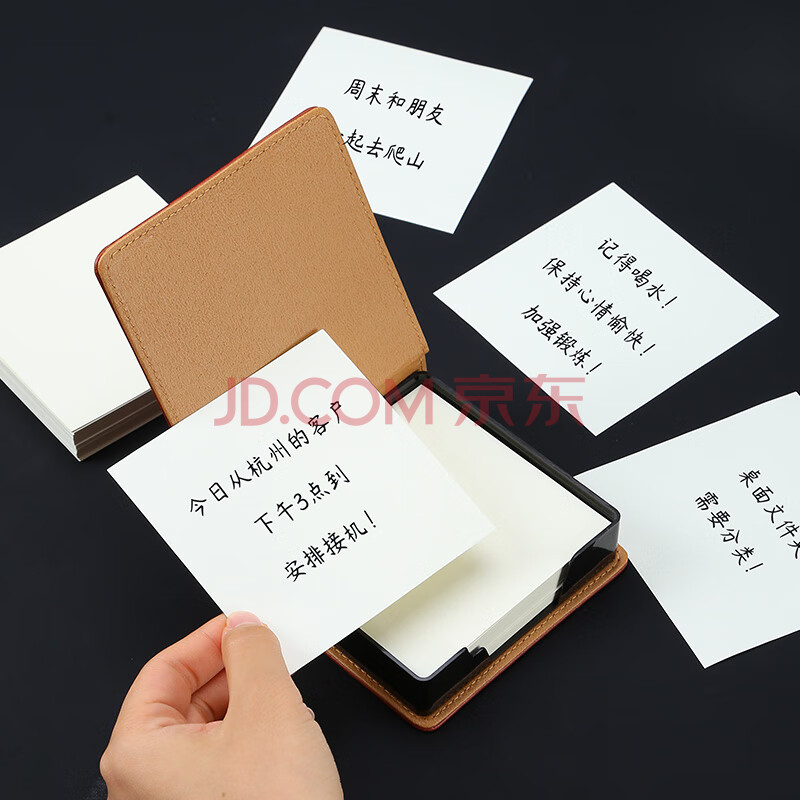 商品相册:嘉然恒 商务皮质便签盒办公桌多功能收纳盒可撕便签纸小本子便利贴留言百事贴纸条 棕色第