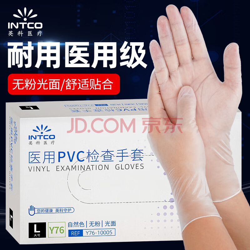 商品相册:英科医疗(INTCO)一次性手套PVC手套100只大码医务实验室美容餐饮烘焙防护检查手套第