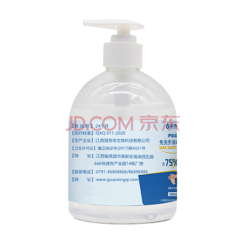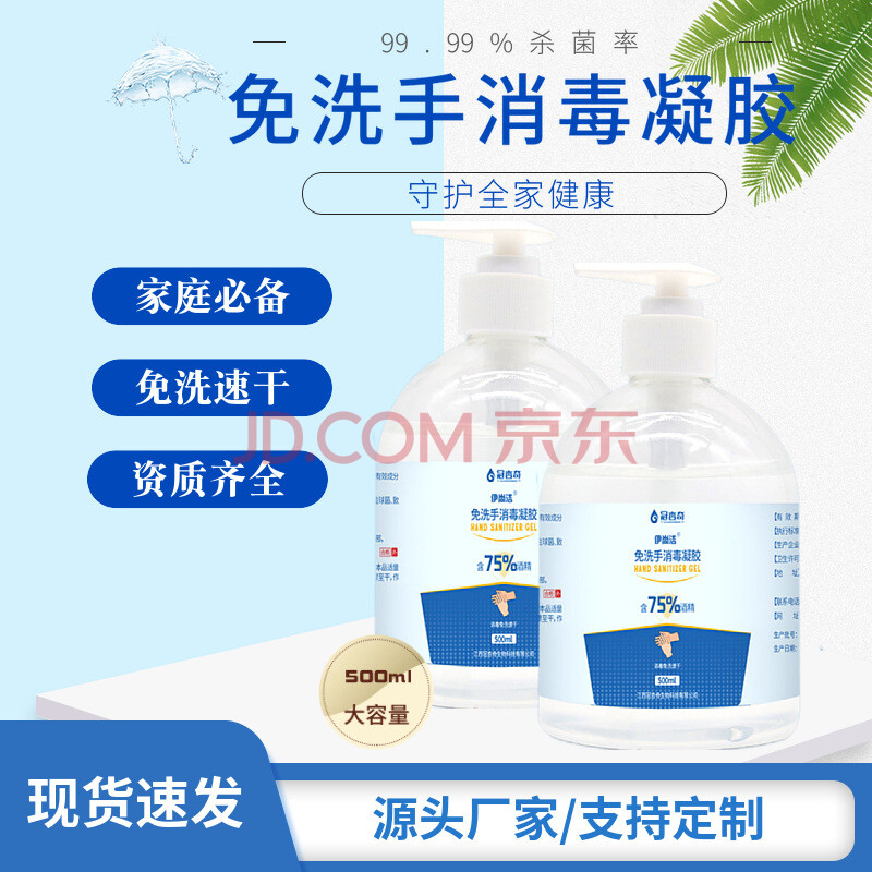 商品相册:冠杏奇 75%酒精免洗手消毒凝胶500ml大容量便携式家用免洗洗手 5瓶第