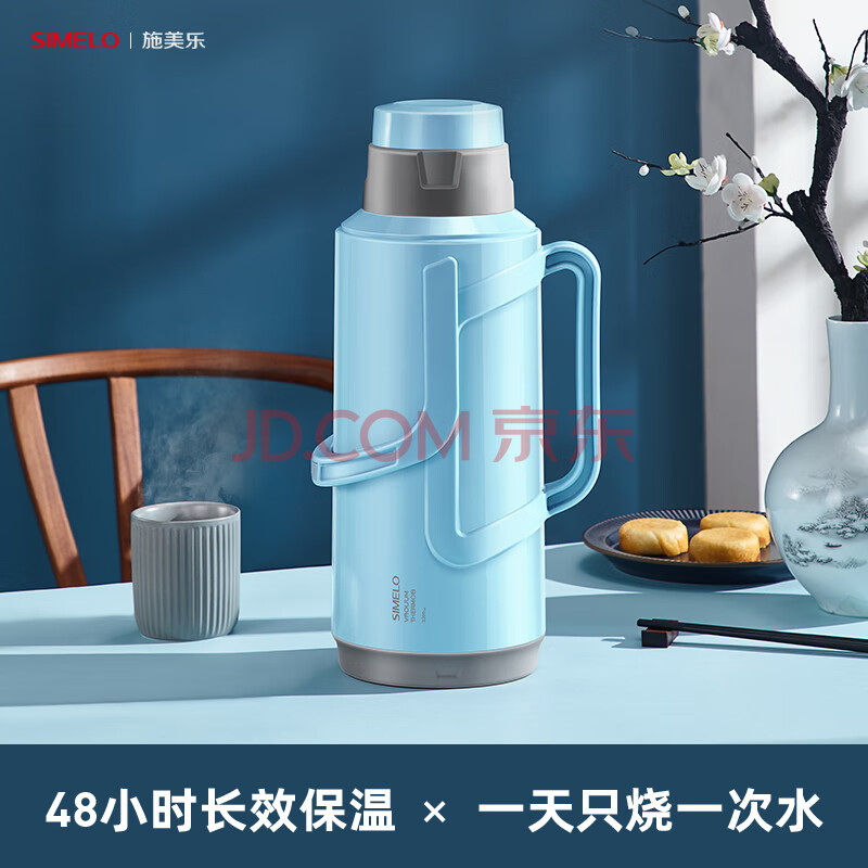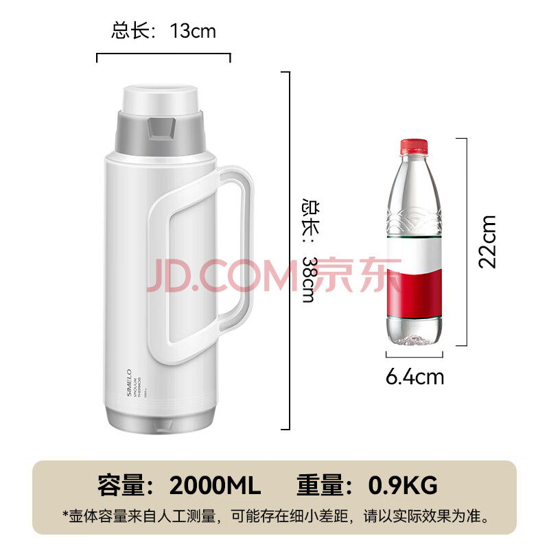 商品相册:SIMELO明月保温壶保温瓶玻璃内胆304钢盖水壶学生宿舍热水瓶2.0L无印白第