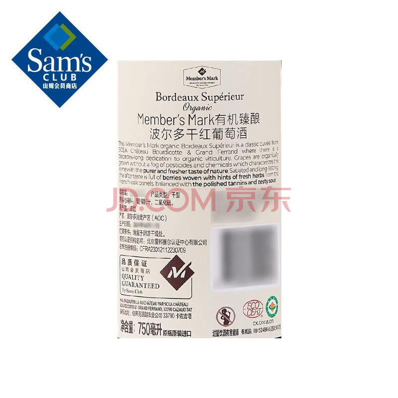 商品相册:Member's Mark 法国进口 有机臻酿波尔多干红葡萄酒 750ml 750mL第