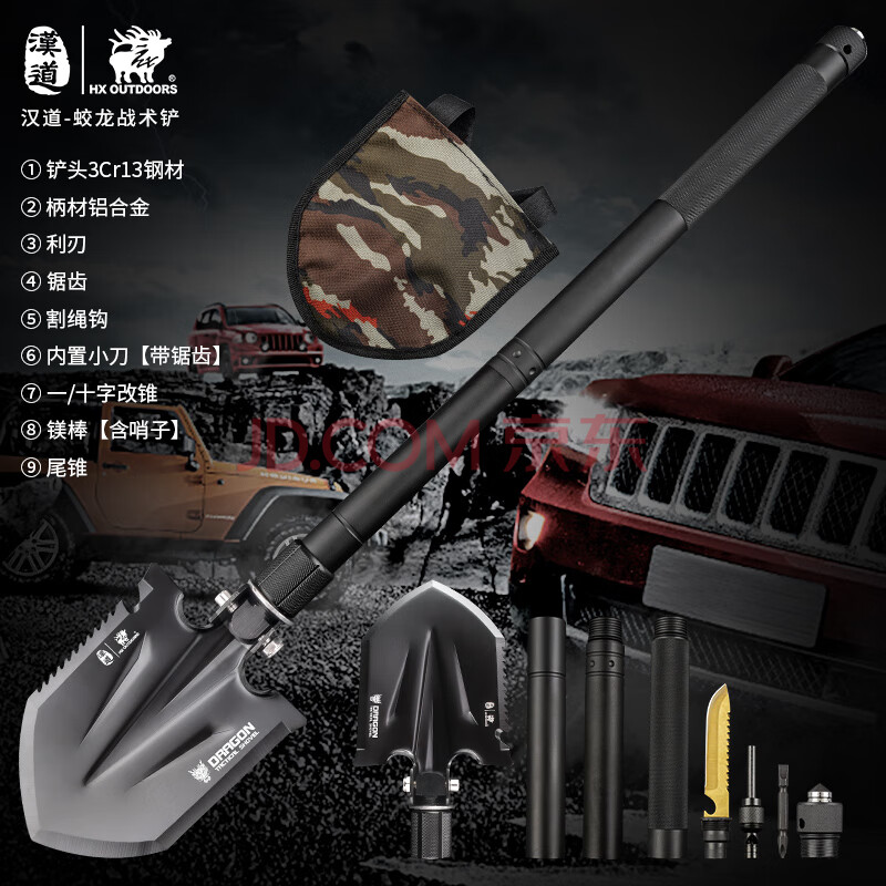 商品相册:汉道多功能工兵铲兵工铲折叠铲子铁锹户外装备车载兵工铲蛟龙战术铲第