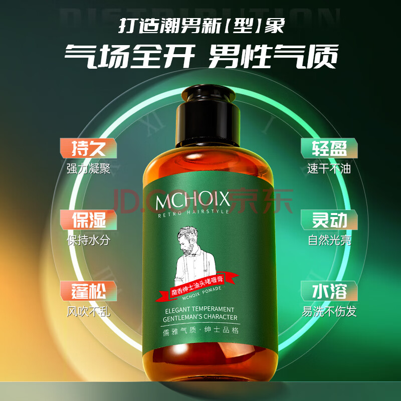 商品相册:魔香绅士油头啫喱膏男头发保湿定型啫喱水背头造型油头膏男发胶喷雾第