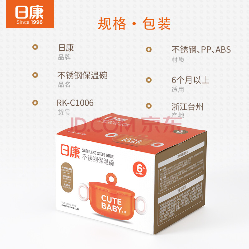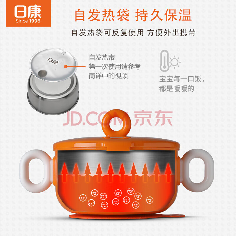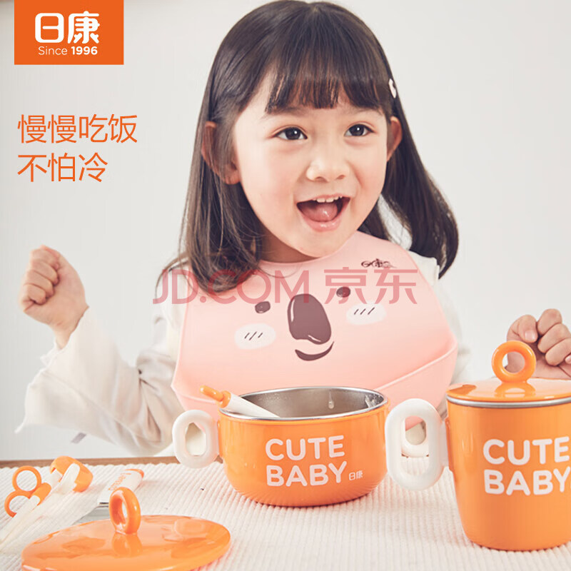 商品相册:日康儿童餐具辅食碗 宝宝餐具保温碗 不锈钢婴儿碗 RK-C1006第