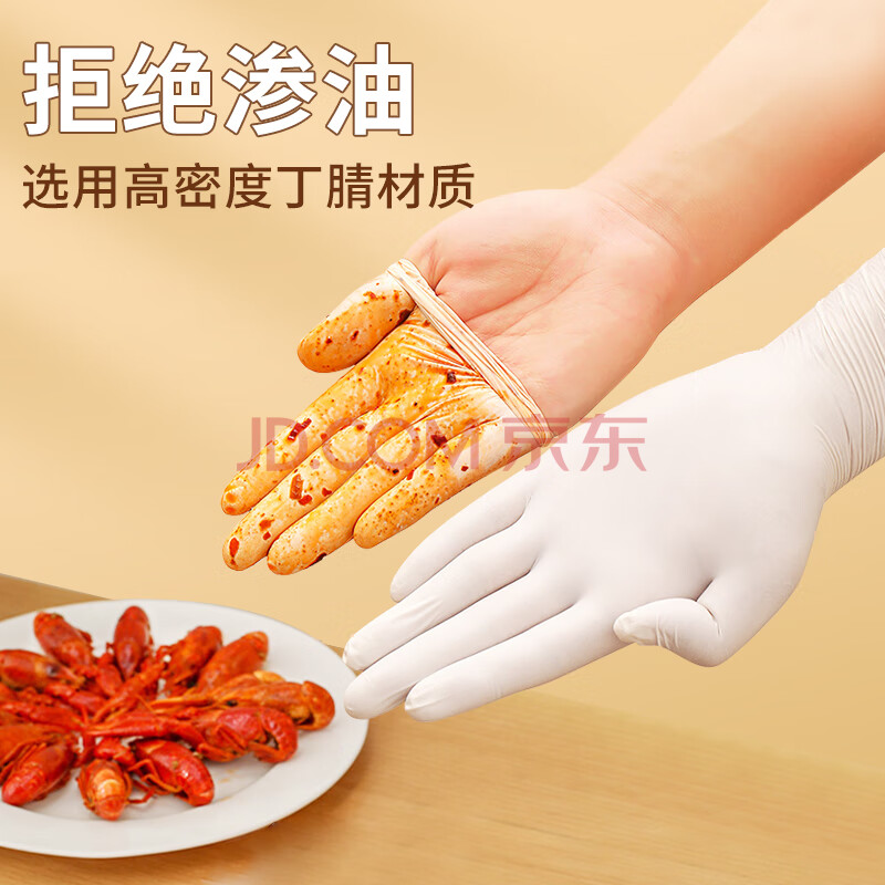 商品相册:爱不释手 5一次性丁腈手套加厚防寒食品级12英寸100只/盒厨房家务美容手套第