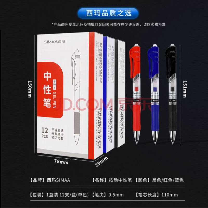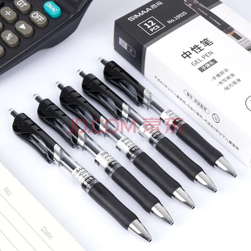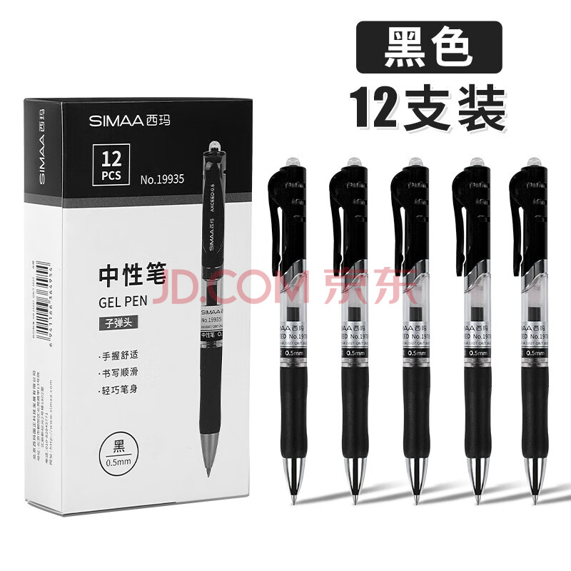 商品相册:西玛中性笔黑色签字笔水笔子弹头0.5mm按动式笔12支/盒文具办公用品19935第