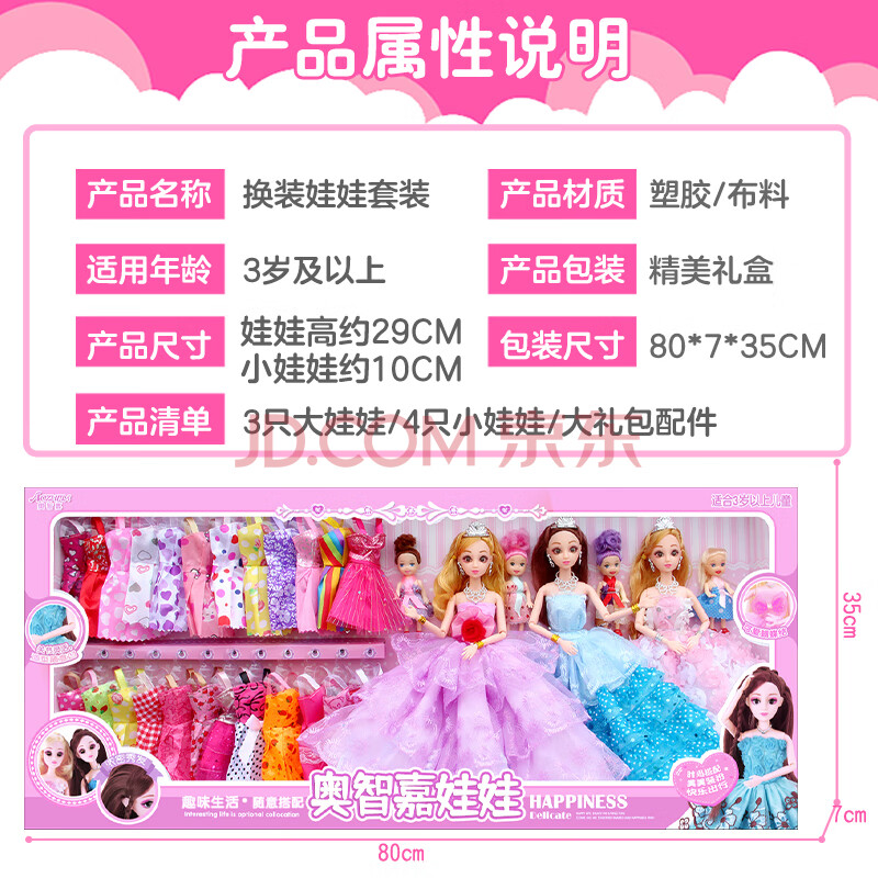商品相册:奥智嘉换装娃娃大礼盒3D真眼7只公主洋娃娃过家家儿童玩具女孩生日礼物第