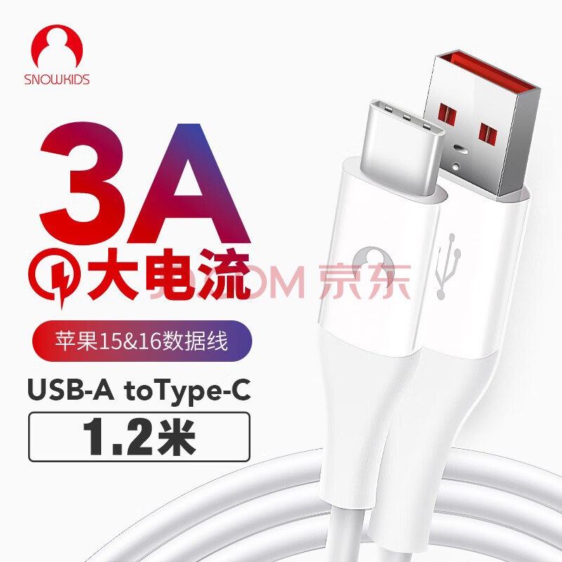 商品相册:Snowkids苹果17/16/15充电线Type-C数据线3A线USB-C车载Carplay适用iPhone17/16/15ProMax华为荣耀小米1.2第