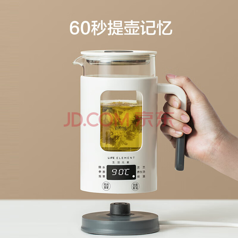 商品相册:生活元素(LIFE ELEMENT)养生壶迷你 办公室独享小容量0.6升 保温一体智能全自动恒温 花茶精煮壶 I13第