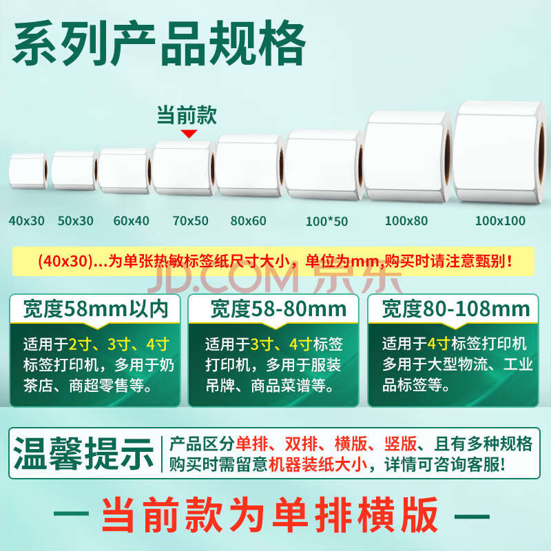 商品相册:天章 (TANGO)新绿天章70x50mm 500张*1卷 五防热敏合成标签打印纸 食品服饰标签 电子秤条码纸 不干胶打印纸第