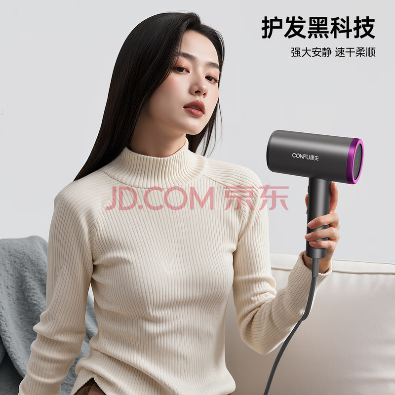 商品相册:康夫(CONFU)电吹风机家用低辐射1800W大功率负离子恒温护发大风力速干杀菌冷热风吹风筒KF-3149第