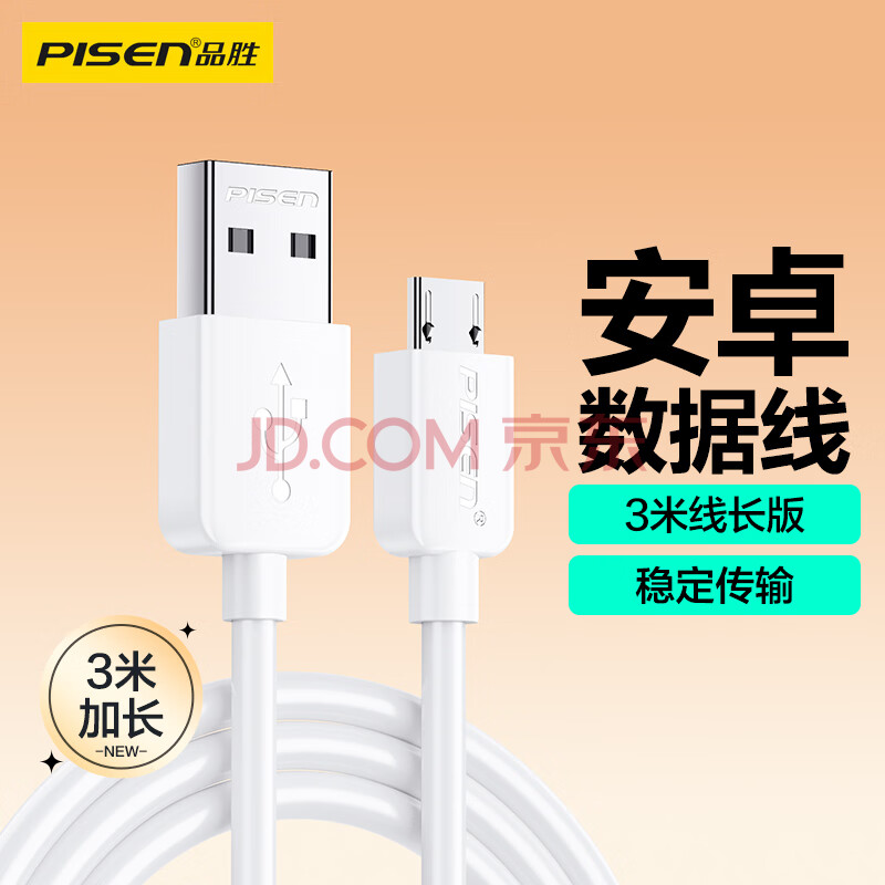 商品相册:品胜(PISEN)安卓数据线Micro USB充电线2A充电器电源线加长3米适用华为小米vivo荣耀oppo手机小风扇充电宝第