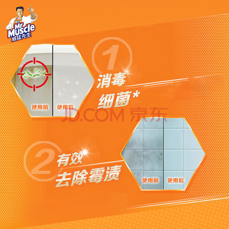 商品相册:威猛先生(Mr Muscle) 甲流感防范 尼帕病毒防范 84消毒液 500g*3瓶 家用清洁 清新花香第