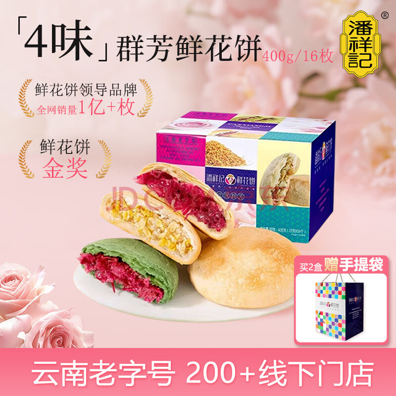 商品相册:潘祥记 4口味鲜花饼 云南特产糕点零食大礼包 400g共16枚群芳礼盒第