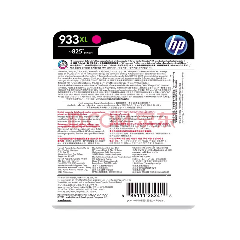 商品相册:惠普(HP)933XL(CN055AA)原装品红色墨盒 适用hp适用6100 6600 6700 7110 7610 (825页)第