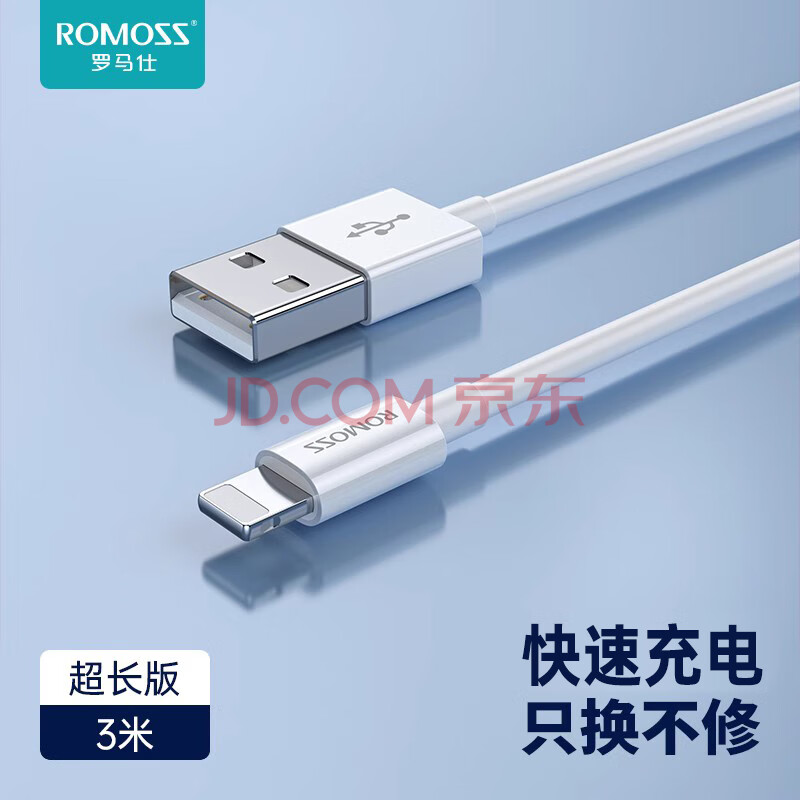 商品相册:罗马仕 苹果数据线加长3米快充充电线适用iPhone12/11Pro Max/Xs/XR/SE/8P/7手机充电器线iPad Air/mini第