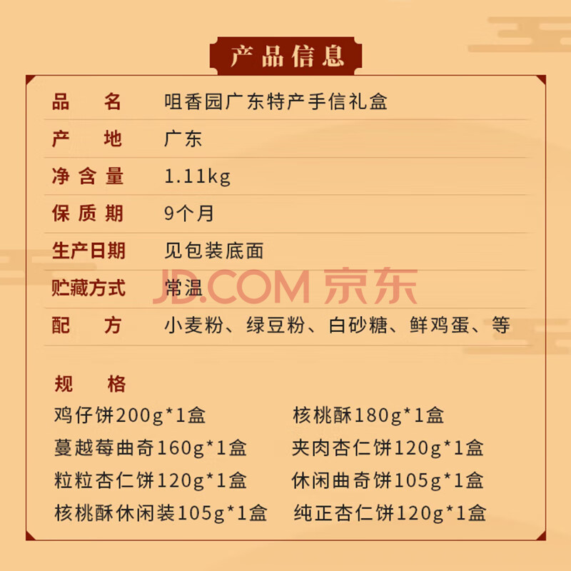 商品相册:咀香园广东特产糕点1110g礼盒杏仁鸡仔饼糕点广州中式澳门伴手礼第