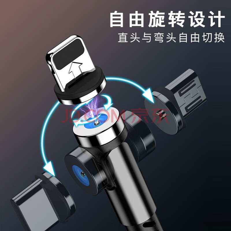 商品相册:孜泰 磁吸苹果数据线充电线手机游戏充电器线 弯头直头可切换 一线一头【苹果】 1米 黑色第