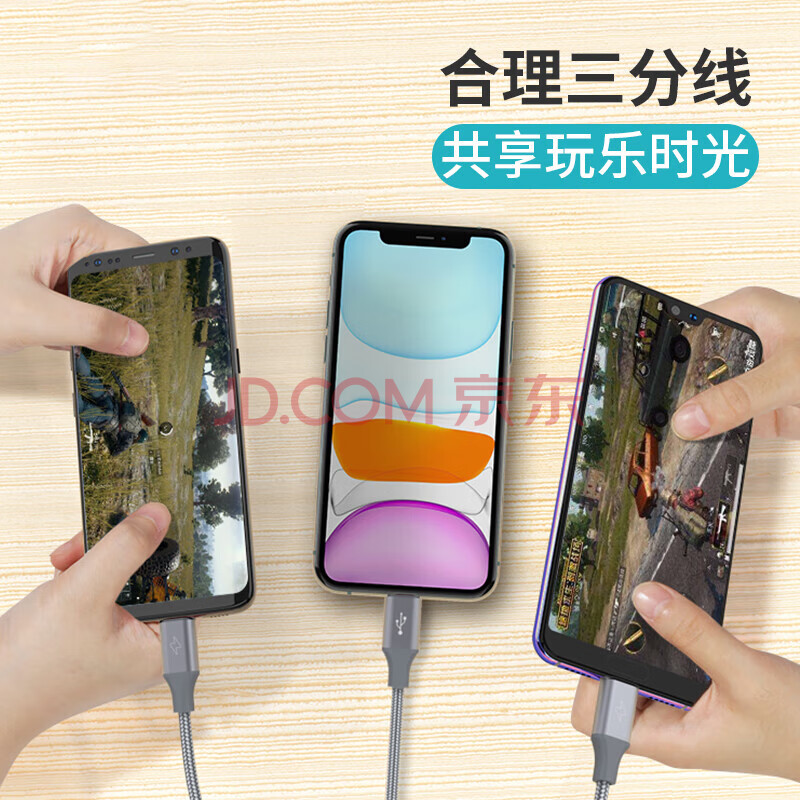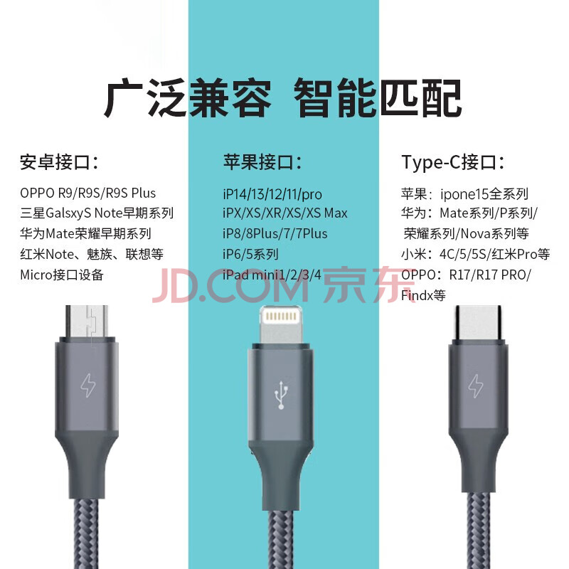 商品相册:罗马仕数据线三合一苹果Type-c安卓手机充电线一拖三头适用苹果iphone16/15/14小米华为荣耀vivo车载多用第