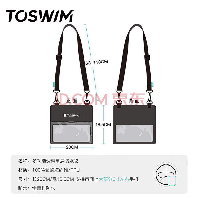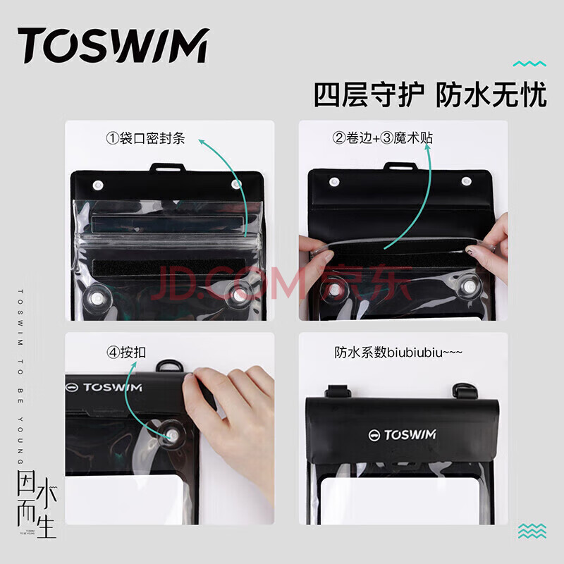商品相册:TOSWIM拓胜手机防水袋潜水套可触屏游泳水下拍照华为苹果14 透黑幻想第