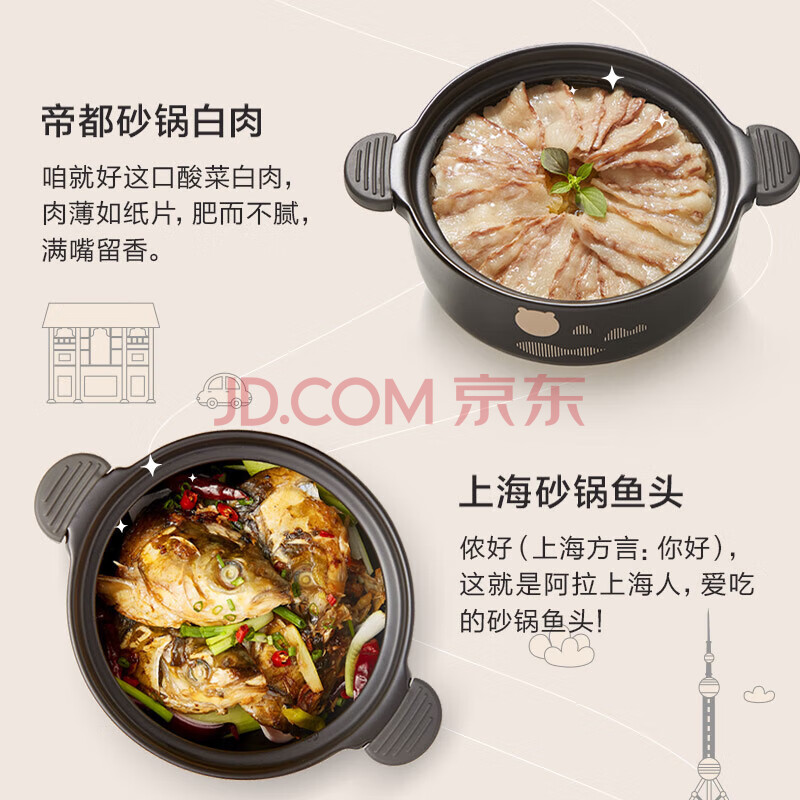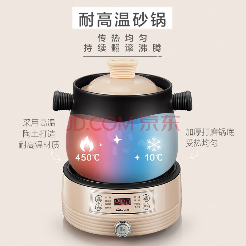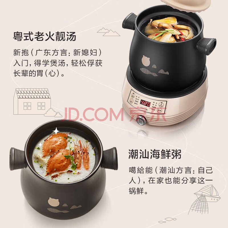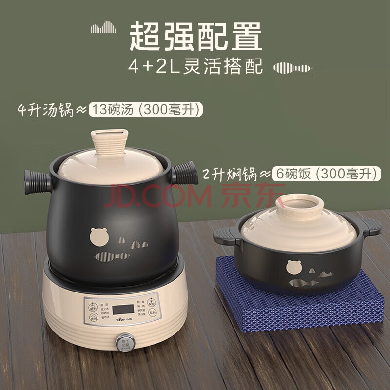商品相册:小熊分体式高温陶瓷双锅电砂锅电炖锅2L+4L DSG-B40J3第