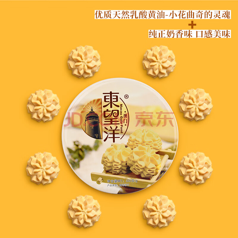 商品相册:东望洋进口黄油小花曲奇320g儿童休闲零食饼干礼盒办公室下午茶第