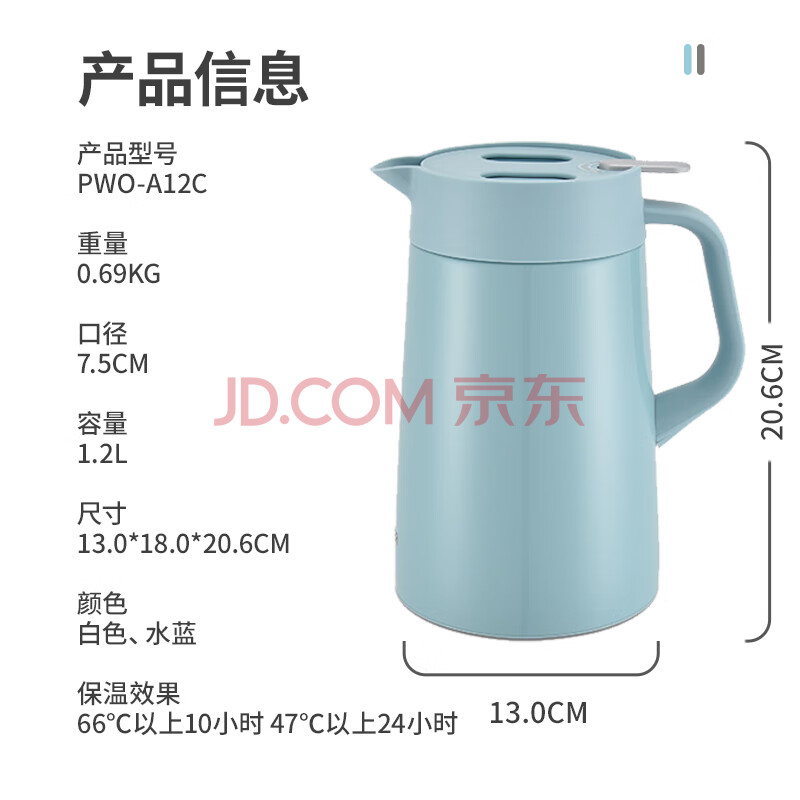 商品相册:虎牌(TIGER)保温壶 304不锈钢时尚简约保温壶PWO-A12C-W 白色1.2L第