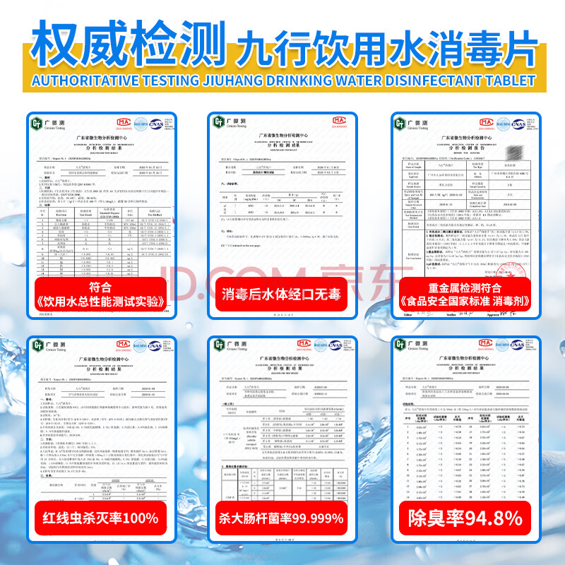 商品相册:九行饮用水消毒片水塔二次供水井水饮用杀菌净化地下水除味防尼帕病毒第