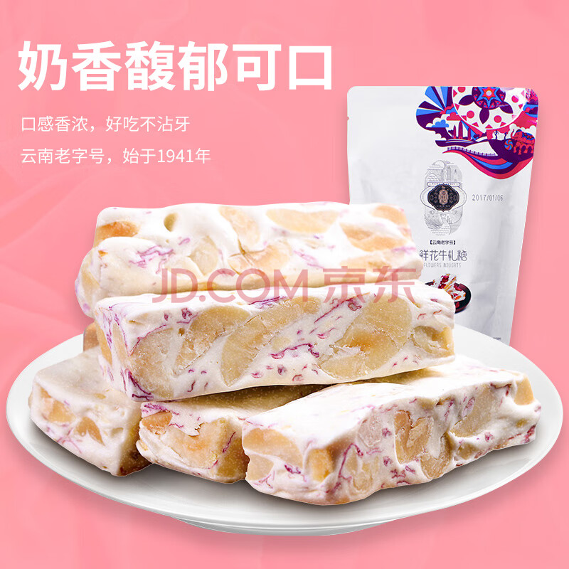 商品相册:潘祥记牛轧糖云南特产鲜花花生牛轧糖220g糖果奶糖软糖办公室休闲零食第