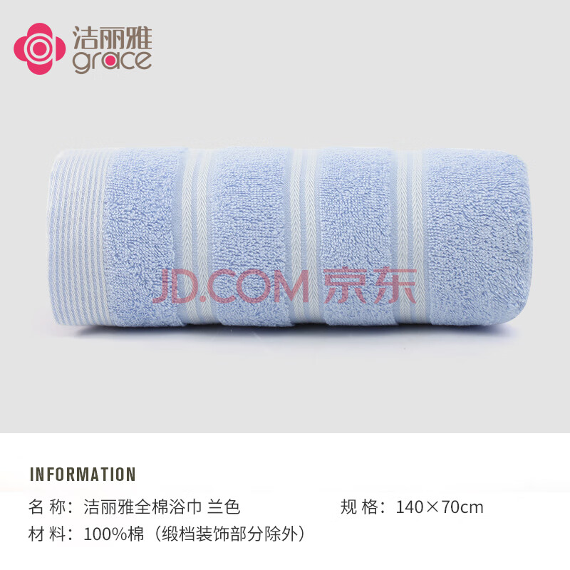 商品相册:洁丽雅(Grace)纯棉浴巾成人儿童家用洗澡大毛巾A类全棉男女士吸水裹巾140×70cm第