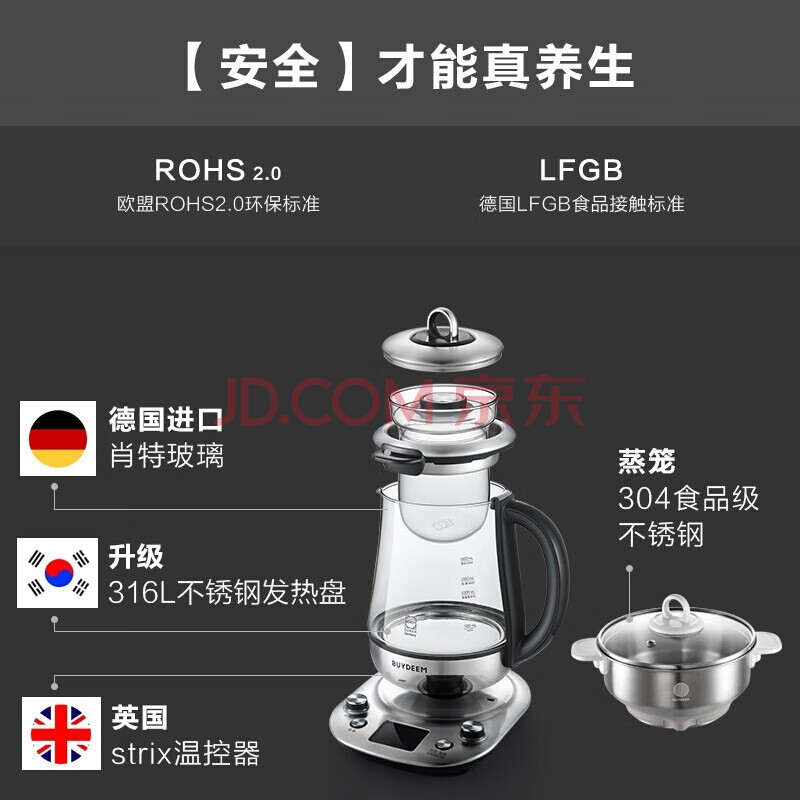 商品相册:北鼎(Buydeem)多功能养生壶高端预约中药壶煮茶器礼品商务进口玻璃材质智能养身燕窝壶K187第